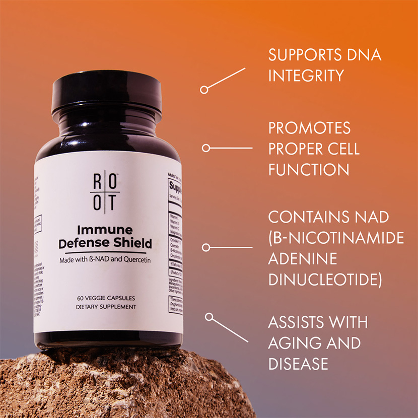 Immune Shield Defense is a proprietary combination of vitamins, minerals, flavonoids, and enzymes working together to maintain DNA integrity and ensure proper cell function, protecting our bodies from aging and disease.